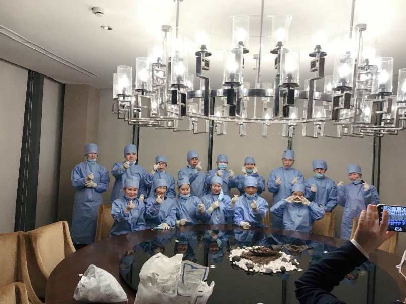 疫情发生之前,王欢和她的同学们在各自的岗位上认真工作实习;疫情严重时,他们自觉遵守国家、学校与酒店的相关规定在宿舍进行隔离与休假;疫情趋缓时,他们又陪同援鄂返沪医疗队度过了一段难忘的时光,受益匪浅。据王欢介绍,他们的工作主要是每天为援鄂返沪医护人员送餐四次:上午七点的早餐,九点半的水果,十一点半的午餐,下午五点半的晚餐。每次送餐都要穿厚重隔离服,戴头套、口罩、手套和脚套,推着手推车,把食物放进保温箱,然后送到医护人员的房间门口。就这样,四位实习学生与酒店工作人员一道和这群凯旋的“白衣天使”们朝夕相处了一个多月。叶俊和周杨说:“我们在为医疗队提供食物时严格做好了个人防护和消毒工作,没有一丝懈怠。而且为他们提供食物时我们很用心也很自豪。”周安全说:“有医生过生日时,我们会给他们做蛋糕、准备惊喜,在收到他们的感谢信时也会感到感动和骄傲。”