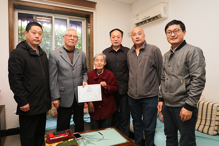 时乾代表学校向两位老同志敬呈了《乐投官方网站_乐投(中国)股份有限公司,校史馆捐赠证书》,祝福两位老同志健康长寿,生活愉快,相约建校70周年校庆。