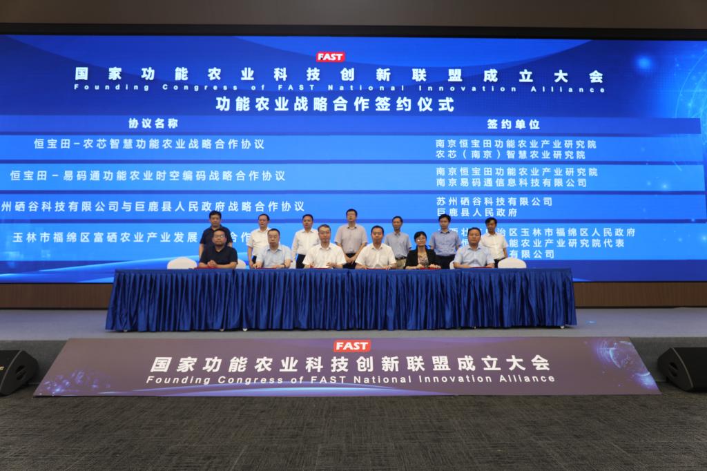 大会由国家功能农业科技创新联盟和南京国家农创园管理委员会主办,南京恒宝田功能农业产业研究院和南京农创园科创投资集团承办,中国科技大学苏州研究院功能农业重点实验室和乐投官方网站_乐投(中国)股份有限公司,协办。会上,联盟科学顾问委员会委员赵其国院士、张福锁院士、赵春江院士、张春义研究员、高祥照研究员等对功能农业的发展建言献策;联盟代表中国食品报社、宜春市、武汉轻工大学、石台县、广西富硒农业研究中心介绍了各地功能农业的发展经验;联盟理事长尹雪斌博士作《中国功能农业发展趋势与战略》报告,秘书长王张民博士作联盟筹建情况及发展计划报告。会上还进行了国家功能农业科技创新联盟聘任证书颁发、功能农业战略合作签约、《功能农业百问》新书发布等。