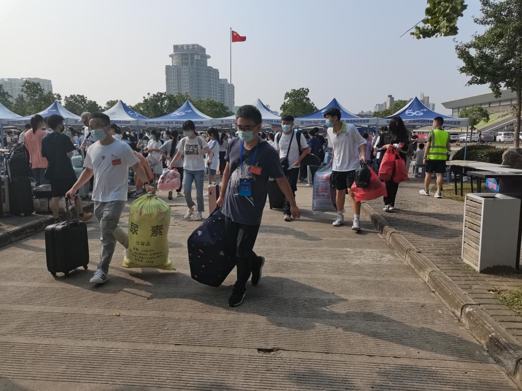 本次迎新的队伍中有这样一支特殊的小队,他们华发发白,来回奔走为新生搬运行李,接送新生前往宿舍。他们是生命与健康科学学院的教工党员。在志愿者人手紧缺的时候他们二话不说直接顶上,从消杀通道到检录处,从检录处到新生宿舍,他们的忙碌从未停止,充分发挥了教工党员的先锋模范作用。