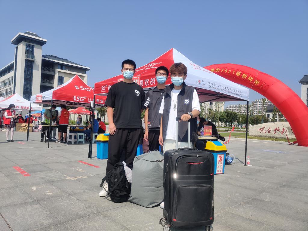 学院迎新处,王竑博一直忙碌着,给前来报到的同学喷消毒水、指引道路、搬运行李,他顾不上休息,一心只想服务同学。身着电气与电子工程学院志愿者服装的他,将自己身影留在了迎新点的各个角落。谈及如何想到去做一名新生志愿者时,“其实没有想太多,看着学长学姐为了帮助我们不辞辛劳,忙前忙后,我就想我也要做点什么。”王竑博如是说。抱着这样的想法,王竑博不顾十几个小时旅程的疲惫,按捺着初来大学校园时心里的兴奋,放下行李,他就投入到了志愿服务工作中,他用最朴实的行动,表达对学长学姐的诚挚谢意。