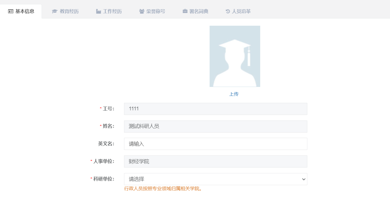 进入科研系统,首先完善“个人资料”,进入后完善个人基本信息及详细信息,便于系统推送相关信息。
