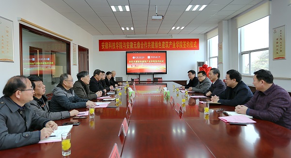12月20日下午,我校“绿色建筑产业学院”签约暨揭牌仪式,在安徽元鼎建设工程有限责任公司三楼会议室举行。校党委副书记、校长李震,校党委委员、副校长黄友锐,教务处处长俞浩,建筑学院院长张远兵、党委书记傅友福;安徽元鼎建设工程有限责任公司董事长叶士平、党委书记吕义龙、副总经理张志坚、总工程师张继文等共同参加了签约暨揭牌仪式。仪式由张远兵主持。