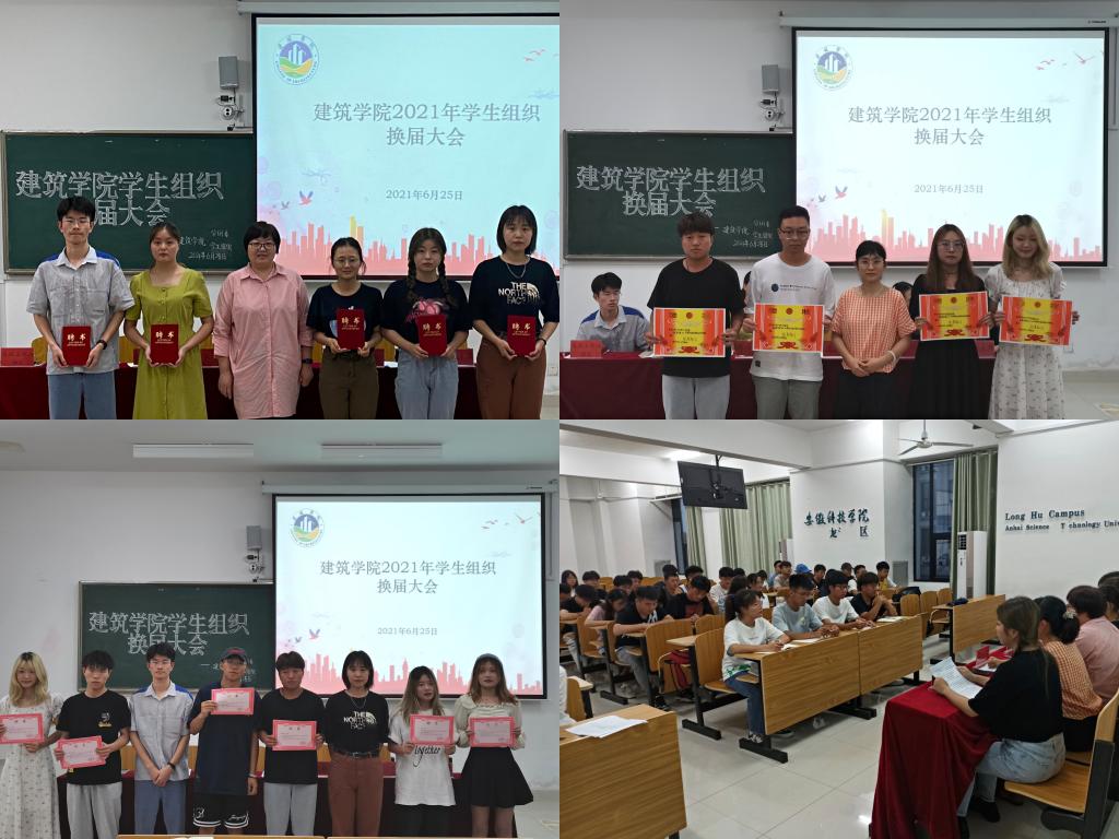 6月25日,建筑学院在致知楼B208举行2021年学生组织换届大会。建筑学院党委副书记谢宜勤、团委书记沈德艳,学生会、易班工作站、艺术体育中心全体成员参加了本次大会。