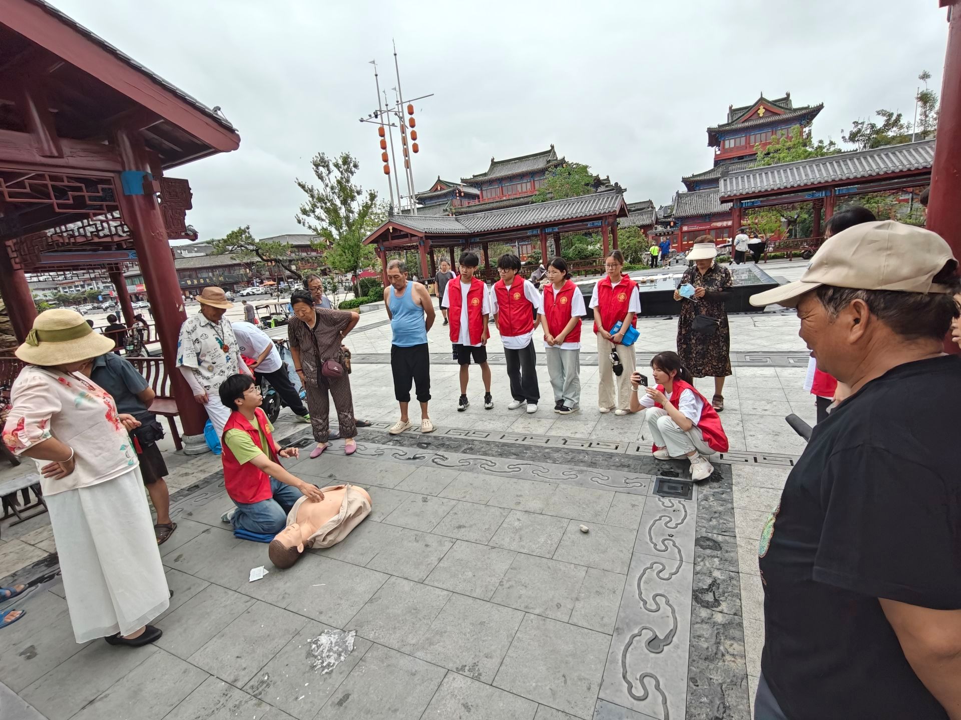在学院团委书记姜毅及辅导员张文龙、陈荟如带领下,志愿者们穿梭在开封博物馆等处,向广大市民发放精心制作的宣传资料,演示心肺复苏的规范操作流程,详细介绍艾滋病和结核病等防治要点,并耐心解答市民们提出的问题。
