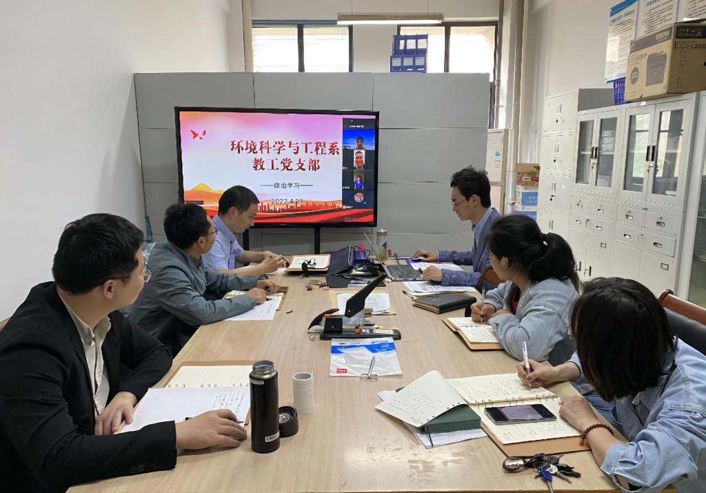 4月27日下午,资源与环境学院环境科学与工程系教工党支部以“线上+线下”相结合的形式组织召开支部党员集中学习教育活动,李飞跃副院长以及全体党员参会,会议由党支部书记范行军主持。