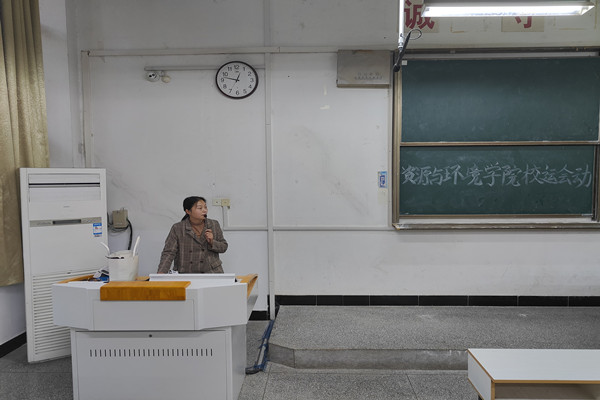 11月10日中午,资源与环境学院于求知楼A105召开校运动会动员大会暨学生会全体大会。资环学院学生会指导老师王丽萍受邀出席本次会议,全体参赛运动员及第八届学生会成员参加本次会议。会议由学生会主席团成员夏莞页主持。