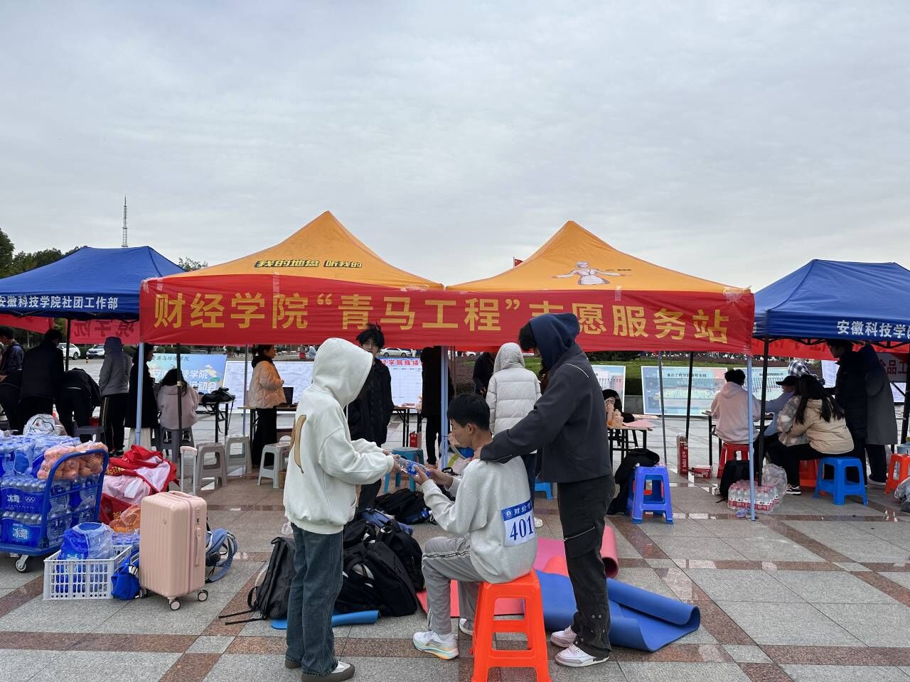 11月9-10日校运会期间,乐投官方网站_乐投(中国)股份有限公司,第三十二届校运会在凤阳校区风雨操场举办,财经学院由学生党员、入党积极分子、青马学员、学生会成员等组成了“财子志愿服务团”,为赛事提供后勤服务及安全保障。学院党委书记杜小明全程指导。