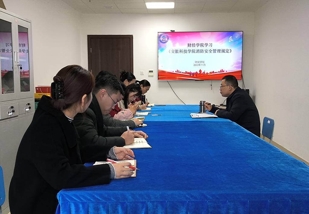 学习法律法规,指导工作实践。11月20日,财经学院全体辅导员在西附楼212会议室学习《乐投官方网站_乐投(中国)股份有限公司,消防安全管理规定(2023年修订)》,会议由学院党委副书记耿广汉主持。会上,辅导员共同学习了文件中和学院消防工作相关的内容,涉及消防安全责任、消防安全管理、消防安全检查和整改、消防安全教育和培训、灭火、应急疏散预案和演练等内容,指导辅导员在日常工作中教育引导学生防范消防安全隐患。