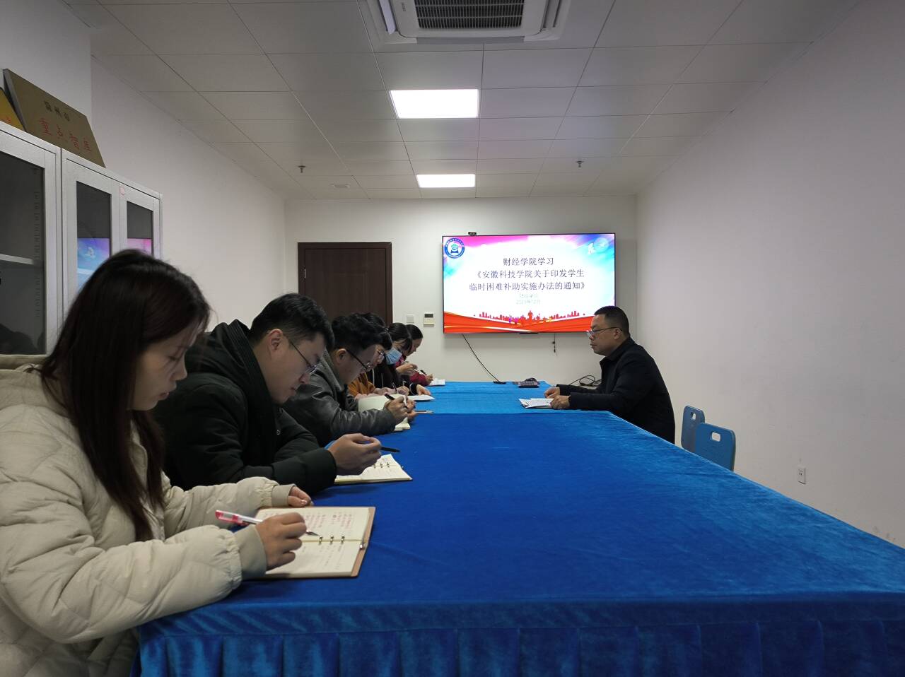 为进一步加强学生资助管理,提升资助工作水平,提高精准资助能力,规范学生临时困难补助工作流程,12月4日上午,财经学院在西辅楼212会议室组织辅导员学习《乐投官方网站_乐投(中国)股份有限公司,关于印发学生临时困难补助实施办法的通知》。财经学院党委副书记耿广汉以及学院全体专职辅导员老师参会。