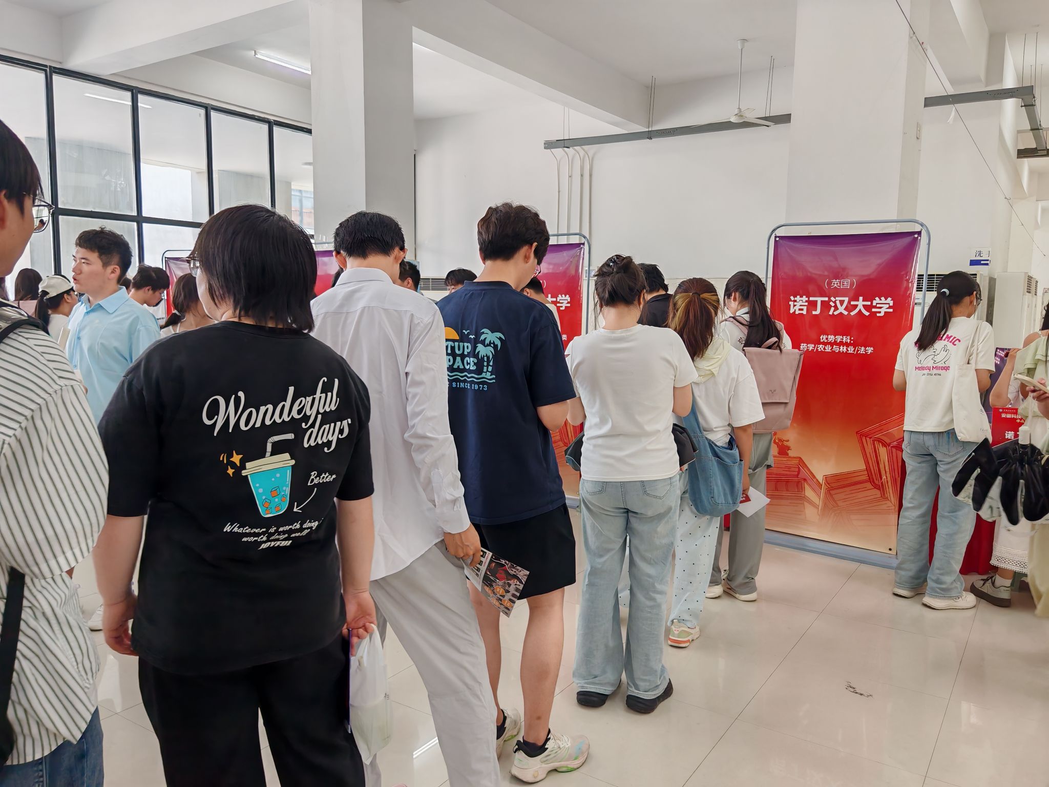 展会现场,英国利兹大学、伯明翰大学,美国东北大学、波斯顿大学,新加坡psb学院等十余所海外院校代表齐聚一堂,通过展台展示、面对面咨询等形式,详细介绍院校特色、专业优势及申请流程。参展院校覆盖商科、金融等财经学院优势学科领域,为学生提供了与面对面交流的宝贵机会。“这次教育展让我直接了解到国外高校的课程设计和就业支持,比网上查资料高效多了!”国际经济与贸易专业22级学生曹洋表示,他正在对比国外院校,计划本科毕业后出国深造。