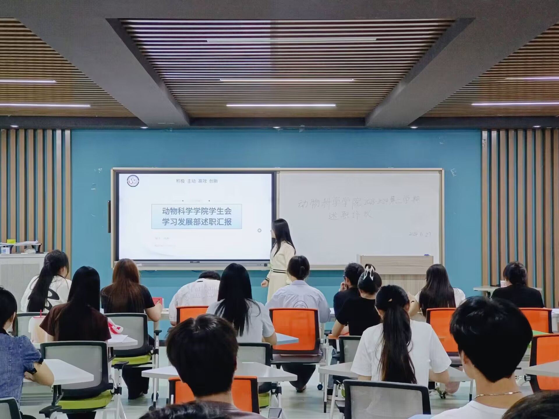 为了增强学生干部的责任意识、服务意识和大局意识,提高学生会成员履职能力,6月27日晚,动物科学学院学生会在求知楼B309召开学生会述职评议大会。学生会主席团成员、各部门负责人参与此次评议,辅导员王永芳老师,各年级学生代表担任评委,大会由动物医学232班徐莹莹主持。