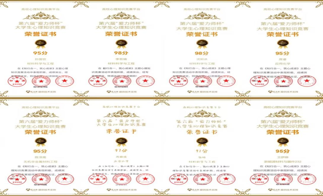 5月6日至25日,学院积极组织学生参与全国第六届“爱力师杯”大学生心理健康知识竞赛和蚌埠市第二届高校心理健康知识竞赛。竞赛内容深度聚焦情感调适、关系构建、压力疏解等心理成长核心议题,帮助学生们系统掌握心理调适技能,逐步提升情绪韧性,在理论与实践的碰撞中为健全人格筑基,为心灵成长注入新动能。学院全体心理委员和众多同学参加了此次竞赛并获得证书。