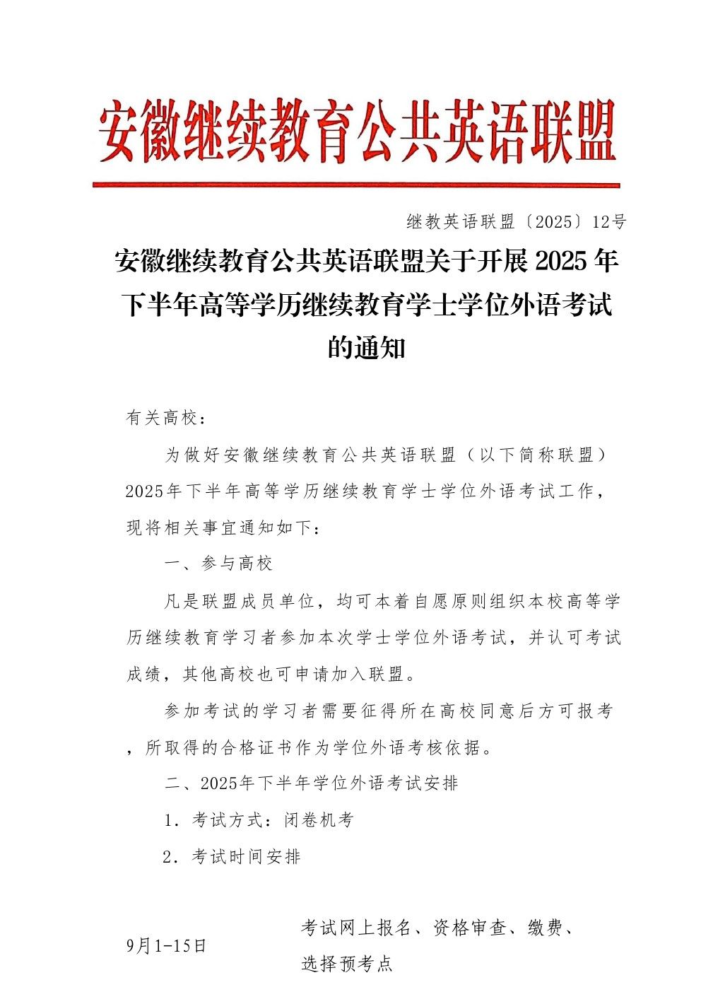继教联盟2025年下半年学位外语考试通知