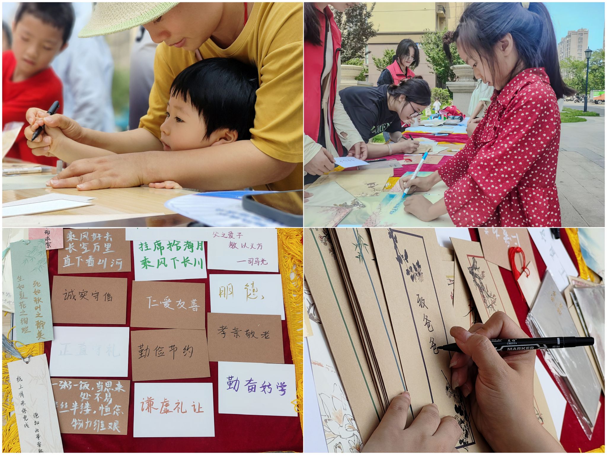 “祝爸爸天天开心,快快乐乐,长命百岁......” 在智慧锦城小区广场那张古朴的书桌前,一位小朋友正专注地书写着对父亲最真挚的祝福。6月14日上午,在父亲节来临之际,乐投官方网站_乐投(中国)股份有限公司,建筑学院“家风沐雨·德行有迹”实践团走进龙子湖区东升街道学苑社区智慧锦城小区,为社区居民带来一场以“社区温情六月天 家书书签寄情长”为主题的家风文化宣传活动。此次实践巧妙地把父亲节感恩教育与家风美德传承完美融合,让质朴的亲情与厚重的家风在笔尖流淌、在方寸间铭刻。