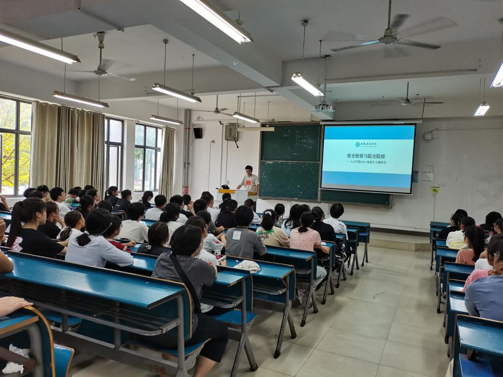 为帮助新生进一步了解校史校情,深刻领会校训“明德、致知、笃行、创新”的丰富内涵,激发新生对学校的认同感与归属感,达到爱校荣校的教育效果。9月16日下午,人文学院在求A105、新B108教室为学院2021级新生召开校史校情与院史院情主题讲座,讲座由专职辅导员方明旺主讲。