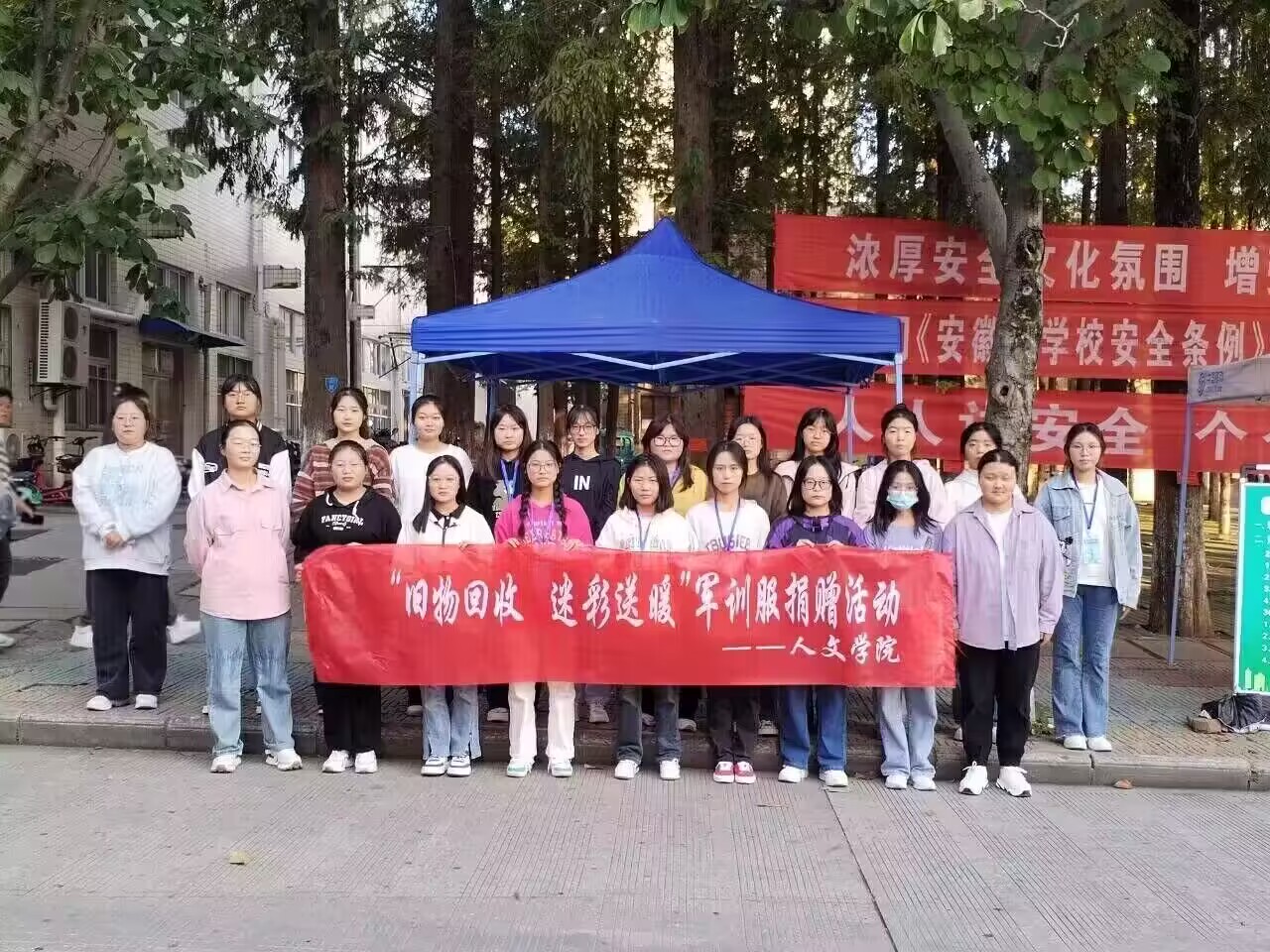 活动期间,学院青年志愿者服务中心围绕“旧物回收,迷彩送暖”活动主题,在凤阳校区学生公寓东区1号楼对面设立募捐点。“如果你是一滴水,你是否滋润了一寸土地?如果你是一线阳光,你是否照亮了一分黑暗?”这些朴实的文字是雷锋精神的生动写照。广大同学踊跃参与活动,整理并清洗常用衣服鞋子、军训服装和书本资料等,尽己所能积极捐赠。