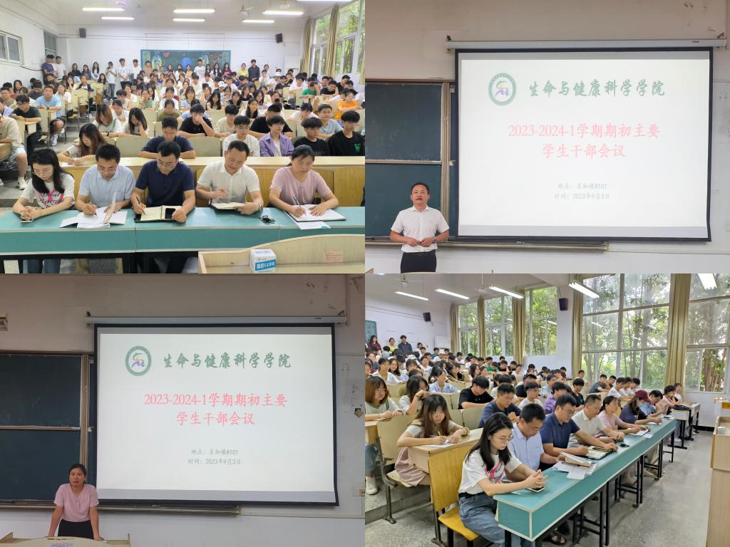 9月3日下午,生命与健康科学学院在求知楼A101召开新学期学生干部会议。学院党委副书记(主持工作)张传德、全体专职辅导员出席会议,各学生团体及各班班长、团支部书记、学习委员参加本次会议。会议由学院党委副书记彭丽萍主持。