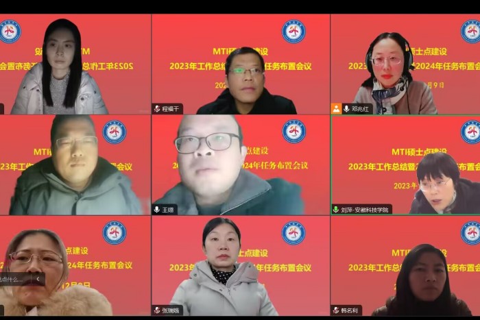 2023年12月29日下午,外国语学院翻译专业硕士(MTI)点建设团队召开线上会议,总结2023年工作进展,布置2024年各项工作。会议由外国语学院副院长邓兆红主持,外国语学院院长刘萍出席并指导工作。