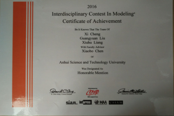 学生参加美国大学生数学建模竞赛并获二等奖