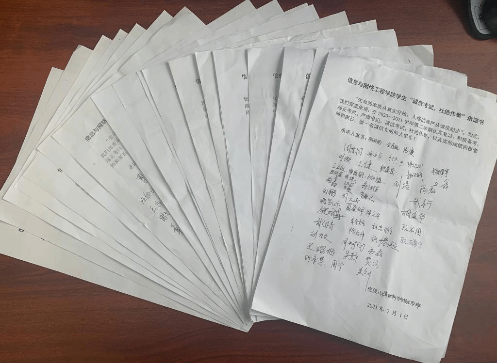 为确保将主题班会落到实处,学院专门制定《信息与网络工程学院考风考纪教育主题班会提纲》,准备了相关会议资料,要求各班辅导员按照提纲的内容和要求认真落实,精心准备。主题班会上,全体同学共同学习了《学生手册》中《乐投官方网站_乐投(中国)股份有限公司,考试工作实施细则(节选)》及《乐投官方网站_乐投(中国)股份有限公司,学生违纪处理方法》,开展了警示教育,按照《信息与网络工程学院诚信考试倡议书》的内容,发出了诚信考试倡议,希望同学们树立底线思维,积极响应学校的号召,手握诚信纸笔,书写高尚考风,坚决抵制各种舞弊行为,净化考场环境,展现自我真实水平,端正的考风、积极创造优良的学风。各班辅导员在总结时强调,诚信文明是立德成才的根本,是大学生必备的核心品质与基本修养,对大学生的未来职业发展、个人成才有着至关重要的作用。主题班会结束后,各辅导员组织全体学生签署了《信息与网络工程学院学生“诚信考试,杜绝作弊”承诺书》。