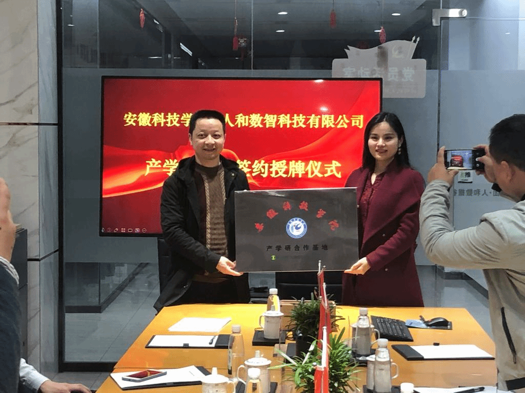 余宏杰代表学校与人和数智科技有限公司签订了校企合作框架协议书,并进行了乐投官方网站_乐投(中国)股份有限公司,产学研合作基地授牌仪式。