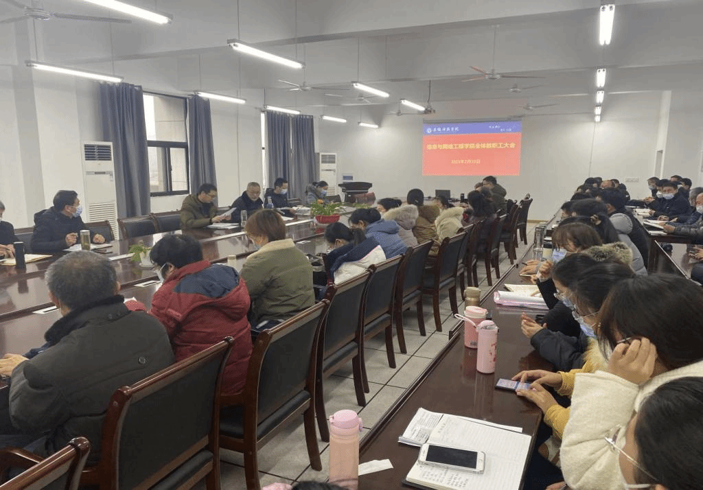 2月23日下午,信息与网络工程学院在尚行楼B418召开全体教职工大会,对上一学年度工作进行总结并部署学期初和新学期重点工作。会议由党委书记王振其主持,全体教职工参加了会议。